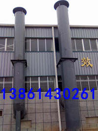 一種排煙消聲器,一種降低氣浪波壓,減少嗓音的排煙消聲器。它包括一個帶有尾管的筒體,筒體的一個端口內(nèi)設(shè)有一個小孔管,筒體內(nèi)設(shè)有一塊隔板,小孔管穿過隔板上的中心孔。在筒體內(nèi)靠尾管的那一端設(shè)有四塊阻尼板,兩塊阻尼板之間形成一個降壓膨脹室,四塊阻尼板形成了三個降壓膨脹室。阻尼板由一塊直徑和筒體內(nèi)徑一樣大的阻尼管隔板及安裝在其上的阻尼管組成。