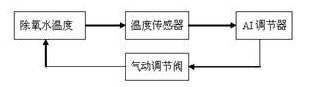 旋膜除氧器溫度:用PT100測量水的溫度,通過溫度變化調(diào)節(jié)氣動薄膜調(diào)節(jié)閥的開度,改變蒸汽量的大小,使溫度保持在104度,調(diào)節(jié)器的型號為AI-808AX3L2L2。
