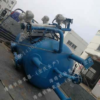 江蘇昆鹽設(shè)備制造有限公司訂購海綿鐵除氧器1臺已生產(chǎn)完成準(zhǔn)備發(fā)貨,海綿鐵除氧器工作原理:50t常溫海綿鐵過濾式除氧器(簡稱:海綿鐵除氧器),它是采用碳鋼材質(zhì)制作,內(nèi)部采用隔板與濾帽結(jié)合的方式進(jìn)行海綿鐵過濾與反沖洗。我們?yōu)橛脩籼峁└咝Ш>d鐵濾料,活性高,除氧效率高,平均粒徑3-5mm,密度為2.2g/cm3。